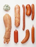 Для изготовления колбас необходимо брать безукоризненно свежее мясо, лучше всего охлажденное, то есть после убоя находившееся в прохладном месте в течение 1-2 суток. Мясо освобождают от костей и удаляют из него крупные сухожилия и грубые соединительные пленки. При разделке очень жирного говяжьего мяса стараются отделить видимый жир. От свиного мяса отделяют шпик и грубые сухожилия, затем мясо нарезают кусками весом примерно 250 г, хорошо перемешивают с солью и селитрой и ставят на 2-3 дня в прохладное место (от плюс трех до плюс пяти градусов).