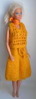В моем хозяйстве много разных учебных материалов, но в семье нет маленьких девочек и поэтому нет хороших фотографий детских изделий, но есть модельки, связанные для кукол. Используя их, легко рассказать, как связана кофточка с капюшоном, сарафанчик или юбочка с жилетом. Изделия легко пересчитываются на детский размер и часто повторяются мамами и бабушками для своих маленьких девочек. Один из первых вариантов этого костюмчика (38 размер) был связан пятиклассницей Настей из выданного мамой небольшого количества ниток (пряжа – 151 м/ 100г, крючок №4, расход - 100 г на жилет и 200 г на юбку), поэтому юбочка такая, как планировалось, а жилетик очень ажурный, из того, что осталось.