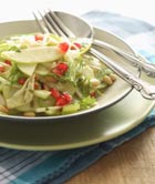 Постарайтесь ежедневно готовить салаты, используя свежие, замороженные или консервированные овощи. Их можно подавать и утром на завтрак, и вечером на ужин, и, конечно же, к обеду в качестве закусочного блюда.