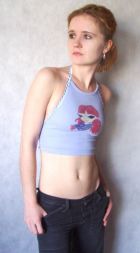 1. Из старой растянувшейся майки вы можете сшить открытый топ для ребенка или взрослого. Для этого вам понадобится тесьма с петельками, круглая резинка или шнур и швейная машина.