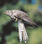 Кукушка - Cuculus canorus - птица из рода кукушкообразных семейства кукушковых. На вид кукушка размером немного меньше городского голубя, длина тела - до 40 см. Размах крыльев - до 25 см. Хвост длинный, ступенчатый, до 22-25 см. Вес - граммов 100-120. На лету кукушка кажется больше, чем когда сидит.
