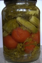 Пикули - смесь мелких овощей: лук, чеснок, мелкие огурчики, помидорчики, гороховые и фасолевые стручки, красный перец, морковь, баклажаны или кабачки, цветная капуста (набор овощей может быть разнообразным).