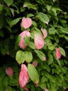 Кора у неё красновато-коричневая, на старых ветках шелушится. Листья у актинидии крупные, тёмно-зелёные. Перед цветением концы листьев белеют, а после цветения становятся розово-малиновыми… Осенью листья приобретают жёлтый, золотисто-жёлтый и фиолетово-пурпурный оттенок.
