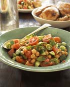 Из расчета на 4 порции потребуется: 4 крупных помидора, 200 г зеленой стручковой фасоли, 2 яичных желтка, 2 ст. ложки тертого сыра, 1 пучок зелени укропа, черный молотый перец и соль по вкусу.