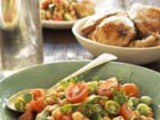 Потребуется: 1 цуккини, 2-3 шампиньона, 1 красный болгарский перец, 100 г черешкового сельдерея, 100 г лука-порея, 100 г филе окуня, оливковое масло.