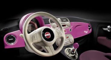 Что общего между автомобильным концерном Fiat и куклой Барби? Имеется нечто, что их объединяет: Fiat предлагает автолюбителям модель 500 Barbie. Этот автомобиль создан специально к пятидесятому дню рождения гламурной куклы. Кузов автомобиля ярко-розового цвета, салон автомобиля также оформлен в розовых тонах, приборная панель и колпаки колёс щедро украшены стразами. Кроме того, в машине есть зеркальце с подсветкой, чтобы женщина-водитель могла накрасить губы яркой помадой и поправить макияж.