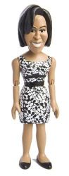 Ранее компания Toymaker выпустила в продажу куклу Барака Обамы. Кукла президента в исполнении Toymaker получилось милой и очаровательной, чего не скажешь о кукле первой леди. Внешнее сходство новой куклы с Мишель Обамой очевидно, но кукольных дел мастерам не удалось передать естественное обаяние реальной Мишель. Навряд ли первой леди придётся по душе такая вот кукольная копия. Хотя при наличии чувства юмора и самоиронии это вполне можно пережить. Добавим лишь, что высота куклы Мишель Обамы - 15 см. Цена куклы первой леди составляет почти 13 долларов, а если точнее, 12 долларов и 99 центов. Производители настроены оптимистично и полагают, что кукла по имени Мишель станет хитом продаж и принесёт хорошую прибыль.