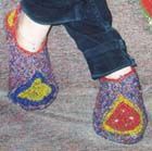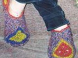 Используя различные вязаные квадраты, можно сделать тапочки разной формы и размера. Описание изготовления более простой домашней обуви, подметкой для которой послужил овал, вы найдете в статье
