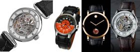 Преимуществами этих часов являются не только перечисленные выше достоинства, но и различный дизайн: от классического до современного. Отличительные черты – использование высококачественных материалов и украшение драгоценными камнями. В основном все модели имеют кварцевый механизм.
