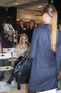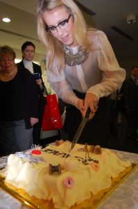 В заключение встречи Ксения в торжественной обстановке разрезала торт, украшенный катушками и иголками, которым угостились все гости и журналисты в честь нового рождения компании SAVAGE.