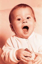 Звукоподражание и лепет – это полноценные слова, просто взрослые не всегда понимают, что хочет сказать их кроха. В логопедии словом считается такой звукокомплекс, который прочно закреплен за конкретным предметом, человеком или явлением. Например, слог «мо» у годовалого малыша может означать «мокро» или «молоко». Если он употребляется только в этом значении, то это - самое настоящее слово. Такие «полуслова», как «мяу», «гав», «ба-бах», «бо-бо» - первые и важные слова в жизни крохи, с которых начинается речь. Наша малышка уже в четыре месяца со всей определенностью называла папу «ГИ!».