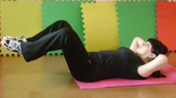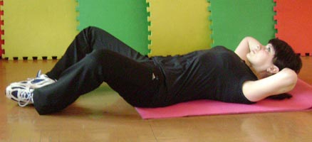 Исходное положение. Руки за головой, голова и плечи подняты, ноги полусогнуты, внутренняя часть ступней соприкасается, образуя ромб.