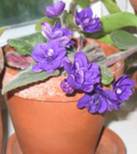 Это многолетнее травянистое растение с укороченным сочным стеблем и собранными в розетку мясистыми опушенными листьями. Овальные листья на черешках сверху темно-зеленые, снизу красноватые. Цветки собраны по 2-7 в соцветия на длинных цветоносах, темно-фиолетовые. Выведено огромное число форм, различающихся размерами, махровостью и окраской цветков от чисто-белых и розовых до красновато-лиловых и темно-синих. Существуют также гибриды с различной формой и цветом листьев.