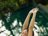 Исходное положение - сидя на стуле (можно стоя), руки подняты вверх, при этом сохраняется небольшой угол в локте; большие пальцы обеих ладоней направлены назад, кисти внутрь; локтевые суставы располагаются чуть выше линии плеч. Само растягивание заключается в том, чтобы как можно дальше увести руки назад.