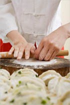 Довести до кипения 4 л воды, добавив в нее 1 ч. ложку соли. Намазать тесто на маленькую деревянную разделочную доску, смоченную холодной водой, и ножом побросать тесто в кипящую воду.