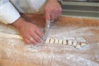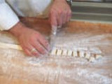 Полученное тесто раскатать в жгут толщиной 1,5 см и нарезать галушки шириной 1,5 см. Варить в подсоленной воде 15 минут.
