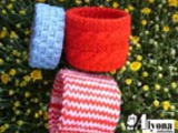 2. Связать чехол для браслета. У меня он связан обычной лицевой гладью на спицах (все лицевые ряды – лицевые петли, изнаночные ряды – изнаночные петли), через ряд чередуется красная и розовая нить. Длина чехла должна быть на 2 см. меньше длины браслета, ширина - на 1 см. меньше.