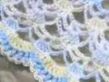 Для выполнения этой шали размером 180см по длинной стороне и высотой 80см использовано 200г импортной пряжи «MAGIC», 35% мохер, 65% акрил, 288м/100г, крючок 6,0. Пушистая пряжа позволяет использовать более толстый, чем для гладкой пряжи той же толщины, крючок и за 2-3 вечера связать очень легкую, теплую ажурную шаль, которая не кажется сильно «дырявой».