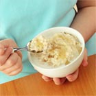 Блюда из круп: рассыпчатые каши на воде или с добавлением молока, паровые, запеченные пудинги, мелко нарубленные макароны.