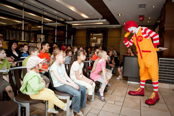 Дети очень тонко чувствуют такое искреннее и чуткое к ним внимание. Посмотрите, что рисуют и пишут они о «Макдоналдс». На одном рисунке его сравнивают с большим солнцем, на котором накрыт стол и сидят малыши, на другом - вокруг семейной елки с детьми водит хоровод Роналд Макдоналд... Рядом с именами авторов, подписавших свои маленькие шедевры, можно встретить трогательное «хочу ходить сюда, как в садик», «мечтаю рождаться чаще, чтобы чаще здесь бывать» и даже романтическое «я встретил здесь свою первую любовь. Денис, 6 лет».