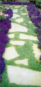 Важно, чтобы покрытие дорожки состояло из отдельных, выложенных на небольшом расстоянии камней, плиток, кирпичей. В промежутках между ними мы и высадим наши цветы.