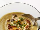Фасолевый отвар процедить и протереть через сито. Ввести в него приготовленную заправку. И измельченный пучок зелени укропа и петрушки.