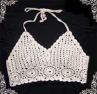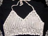 3. Далее вяжем верх топа: *3 ст. с накидом, 1 в.п., 3 ст. с накидом* - повторять от * до конца круга. Вязать 5-7 рядов в зависимости от нужной глубины выреза, затем в центре и с боков начинать убавлять для формирования верха топа.