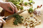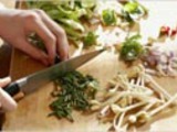 Из расчета на 8 порций потребуется: 2 больших пучка петрушки, 200 г шпината, 300 г картофеля, 5 стеблей сельдерея, 2 лука-порея, 6-8 ст. ложек оливкового масла, 50 г сливочного масла, 200 г грибов, щепотка сухого чабреца или тимьяна, белый молотый перец, морская соль, сметана.