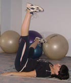 - Зажмите в сгибе ног гантели весом от 2 килограммов.