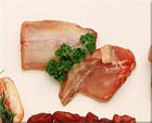 Остывшее мясо отделить от костей и нарезать на кусочки поперек мышечных волокон.