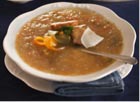При подаче к столу в тарелки с супом положить кусочки жареного мяса (курицу, говядину или постную свинину).