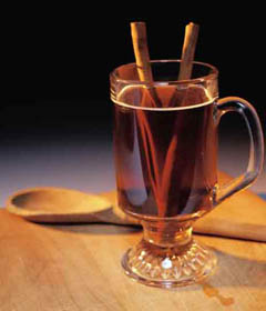 В большой кастрюле смешайте все ингредиенты. Поставьте на медленный огонь примерно на 1 час, следя за тем, чтобы смесь не кипела, и регулярно пробуя на сладость. Потом снять, процедить и сервировать.