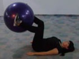 Исходное положение - тоже, что и в первом упражнении. Ноги согнуты, между икрами и ступнями мяч.