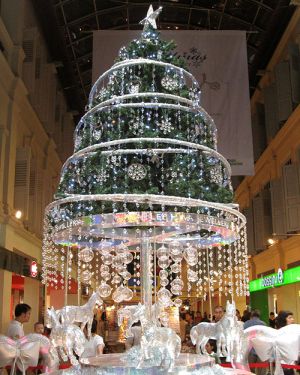 Такой декор можно назвать нео-классикой. Используйте белый, серебристый и синий цвета и их оттенки. Много прозрачного материала: шары, стеклянные бусы, серебристый дождь. Гирлянду возьмите ту, у которой лампочки горят белым или голубоватым цветом.
