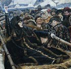 Зимой следующего года она постриглась в монахини. Тогда же царь женился вторично (на Наталье Нарышкиной, впоследствии матери Петра Первого, который продолжит уничтожение староверов с еще большей жестокостью. Под его топор попадет брат Морозовой). Боярыня на венчание не явилась, хотя как придворная дома и дальняя родственница была обязана. И тут государь, которого прозвали Тишайшим, разбушевался. Морозову взяли под стражу. Надели железный ошейник и волокли по полу, чтобы сломать шею. Долго пытали. Выдержала. Тогда вывернули за спину руки и вздернули на дыбу. Потом выкинули нагой на снег и три часа подряд выколачивали раскаяние - то опаляли огнем, то били в пять плетей. Не отреклась. Только кричала: «Христиане ли вы, коли так мучаете человека?!»