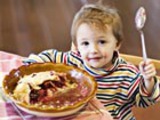 Для фруктового слоя нужно сварить 0,4 л любого фруктового сока (лучше всего апельсинового или абрикосового) с сахаром и картофельным крахмалом, чтобы остывшая масса была желеобразной. Вместо крахмала можно использовать желатин.