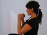 Лежа на спине, руки за головой, голова, плечи и ноги на весу. Необходимо сесть, сгибая ноги и вернуться в исходное положение. Когда садитесь и сгибаете ноги, продолжайте удерживать их на весу, не ставить на пол. Упростить можно так: во-первых, держать руки за головой, а помогать ими подняться, вытягивая вперед; во-вторых, ставить ноги на пол, когда легли и когда сели. Сделайте 16-20 повторений.