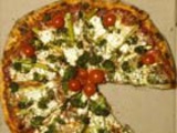 Потребуется: 150 г муки, соль по вкусу, 2 ст. ложки оливкового масла, 50 г помидоров черри, 1 зеленый перец, 100 г моцареллы, 1 пучок базилика.