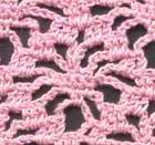Спинка. Связать образец и по нему рассчитать количество узоров, необходимое для вязания ширины (50 см) спинки (1 узор 5см – 14 петель наборной цепочки х10 + 1 петля для симметрии и 1 в.п. подъема =) 142 петли. Вязать основным узором прямое полотно по схеме (раппорт выделен красным цветом) до высоты 41 см, затем для прямоугольной проймы провязать вместо одного узора соответствующее количество ст б/н и в.п., а с другой стороны недовязать 1 узор, повернуть работу и продолжить прямое полотно на ширине восьми узоров до высоты детали 60 см.