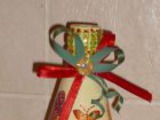 5. Осталось только украсить горлышко бантиком из атласной ленты. Для этого можно использовать клей "Момент", "Титан" или клеевой пистолет. В центр бантика можно приклеить бусину, цветок или другое украшение на ваш вкус.
