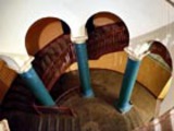 Войдя внутрь, вы окажетесь в вестибюле, откуда вверх поднимаются две симметричные чугунные лестницы, ведущие на площадку со стенами, расписанными еще в начале прошлого столетия. Еще одна небольшая лесенка, представляющая собой ответвление от основной, ведет налево, но не приводит ни к какой двери, а заканчивается маленькой площадкой.