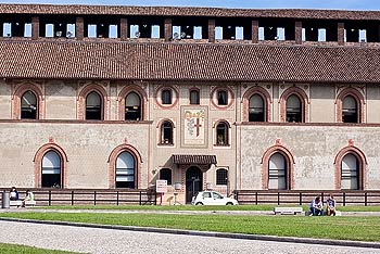 У этого замка долгая и переменчивая история – его начали строить в середине четырнадцатого века как резиденцию для герцогов Висконти, правителей Милана. Уже тогда Милан, известный еще с римских времен, был городом большим и богатым и враждовал со своими правителями. Поэтому герцоги решили построить цитадель в центре города – от внешних врагов и от внутренних. Через сто лет, после смерти последнего герцога Висконти, в Милане все-таки произошел мятеж, горожане разобрали замок до основания и объявили республику. Республике удалось продержаться три года, а потом правителем города стал удачливый наемник предыдущего правителя – Франческо Сфорца.