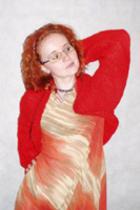 6. Выверните болеро. Проденьте руки в рукава, нижнюю часть полочки перекиньте через шею и отверните в виде воротника-шальки. Низ спинки бывшего свитера теперь будет проходить у вас под лопатками. На груди болеро скрепите красивой брошкой или крупной пуговицей.