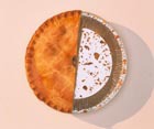 Полученную крошку равномерно насыпать на поверхность фруктового слоя пирога.