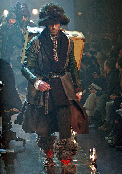 Он представлял на подиуме платья из нарочито разорванных дорогих тканей и находил источник вдохновения то в японской культуре, то в образе козака.