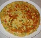 Вылить четверть полученной смеси для омлета в нагретую, слегка смазанную маслом сковороду. Наклонить сковороду так, чтобы смесь растеклась ровным слоем, и жарить омлет до легкой готовности. Если образуются пузыри, их следует проткнуть.