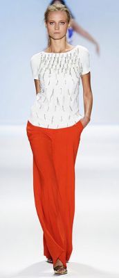 Сегодняшние варианты широких объемных брюк (Ungaro, Carlos Miele, Brioni) – это очень удачный пример того самого мягкого гламура. О женственной классике Италии 70-х напоминает и классическая цветовая палитра подобных брюк – черный, красный, белый.