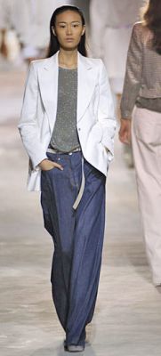 Джинсы остались среди главных модных трендов, но брюки стали либо просто очень широкими, либо расклешенными книзу (Dries Van Noten, Derek Lam, D&G). О 70-х годах в них напоминает не только избыточная широта, но и завышенный пояс.