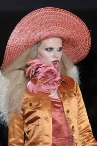 Такие широкополые шляпы (Marc Jacobs, Prada, Alberta Ferretti) хороши, если выполнены из соломки, но могут быть из тканых материалов ярких цветов.