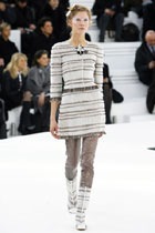 Оформление костюма. Самое характерное для костюма “Шанель” — это карманы, пуговицы и кайма. В качестве каймы используется разнообразная декоративная тесьма (золотая, серебряная, шерстяная, кружевная), шнур, бахрома, бейка, ручное вязание или кант отделочного цвета. Пуговицы Шанель создавала к своим жакетам сама — золотые, серебряные, исполняющие роль декоративной отделки. Подкладка жакета и блузки часто выполнена из одной ткани. Блузку может дополнять бант, галстук, красивая булавка. Очень много в костюме “Шанель” элегантных мелочей — пряжки, пояса с цепочкой, брелки.
